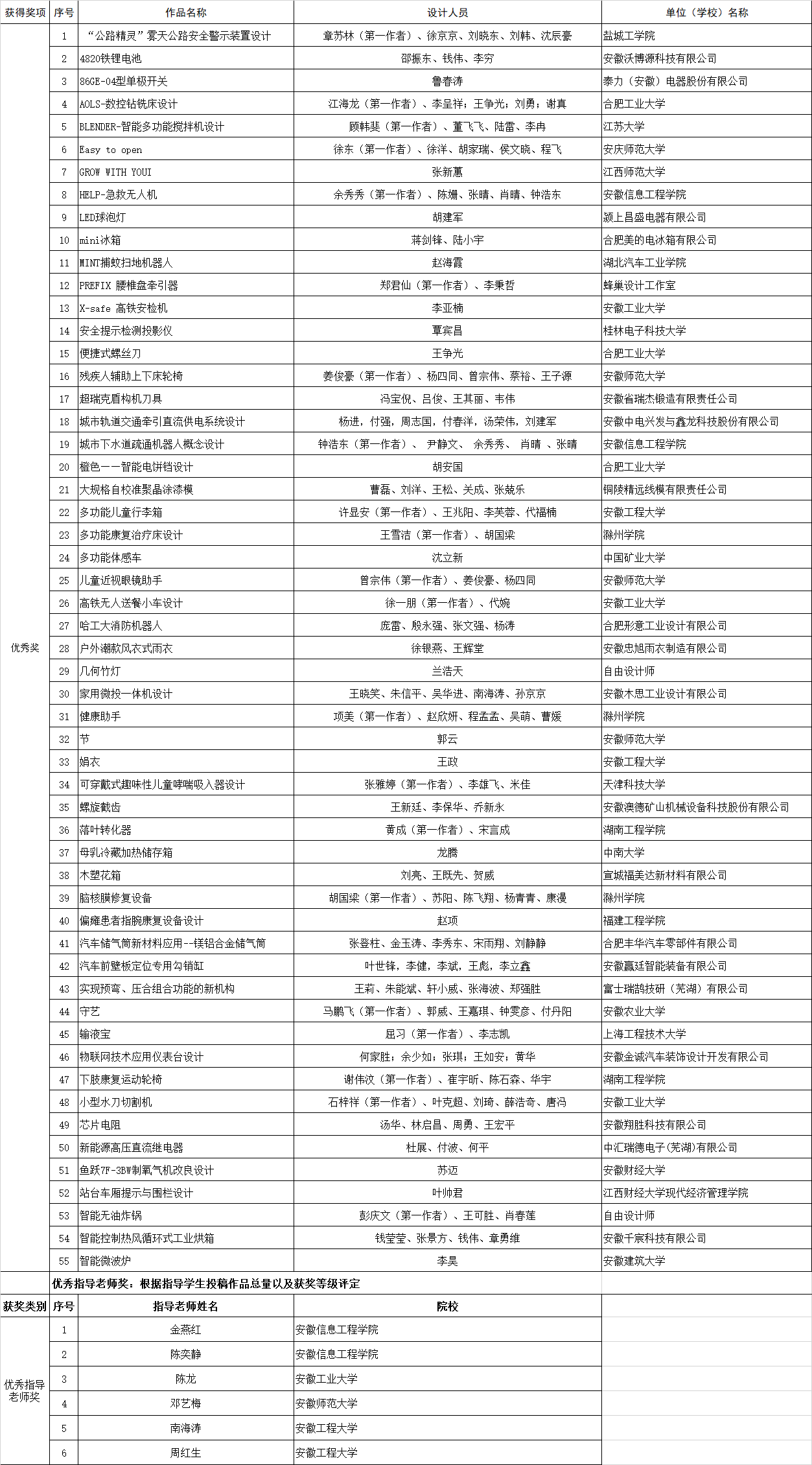 最終,來自奇瑞汽車的E-IUV概念車(概念設計)與安徽聯盟模具工業有限公司的基于無線射頻識別的智能折彎裝備( 實物產品)榮獲本次大賽金獎,從設計理念、產品外形、先進技術在產品中的應用以及解決行業痛點等關鍵問題上,以上作品在行業中均處于領先水平。同時,來自順榮股份、三只松鼠、美的冰箱、中車龐巴迪(蕪湖)、安徽工程大學、安徽工業大學等企業、高校投稿作品也在本次大賽中取得了優異的成績。