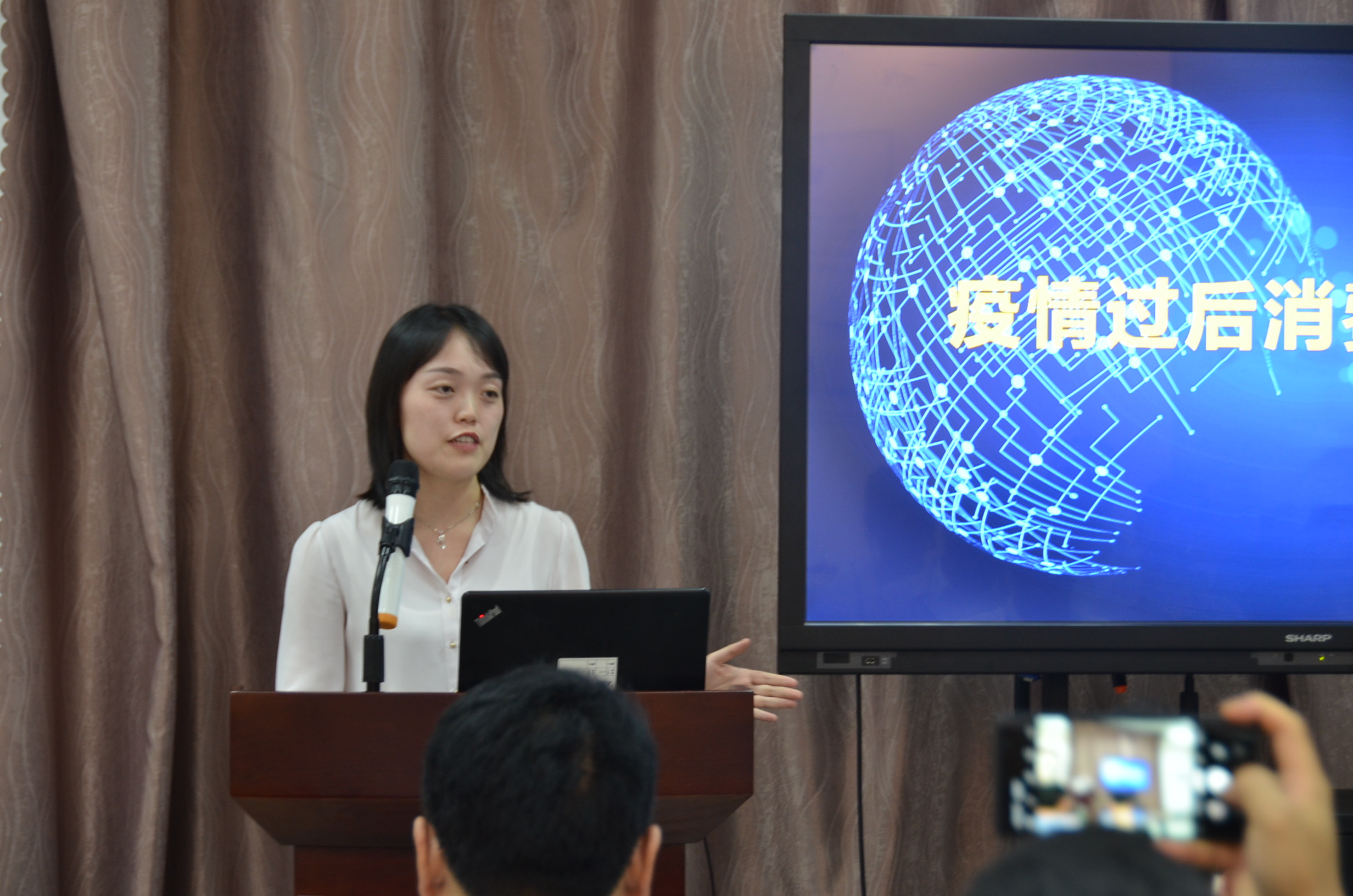 之后,程群同志通過數據分析出大家對消費市場是降中有升的跡象,第三部分分享了消費行業如何渡過難關這一話題,從企業,政府兩個方面分析提出:企業應開源節流,政府應刺激消費,網紅經濟、實體經濟、宅經濟等新現象成為現代經濟的主要發展方向,并分析國外和中國的市場環境。