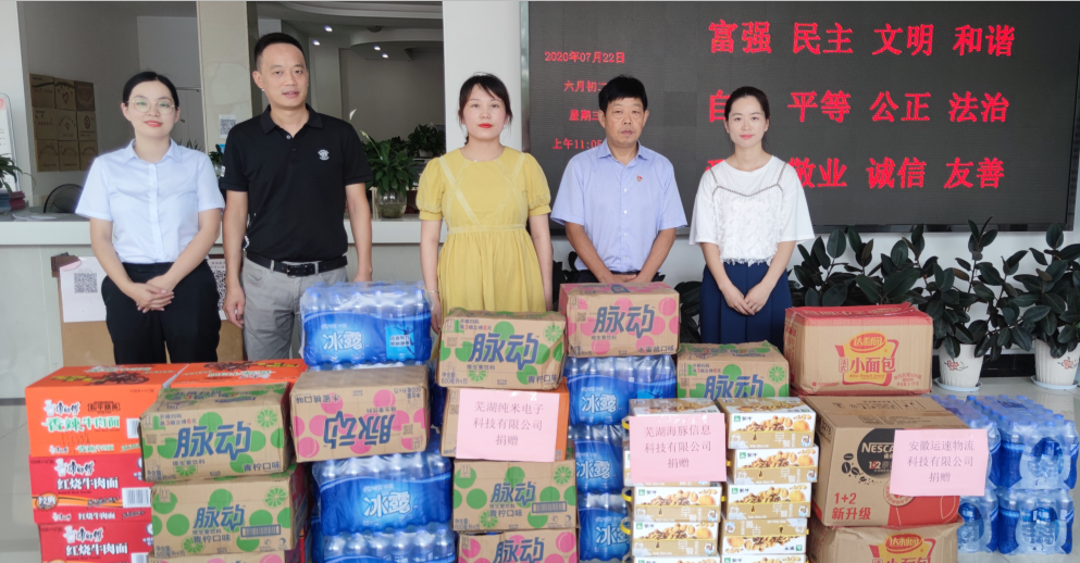 隨著汛情加重,722日,園區繼716日組織7家企業開展愛心捐贈后再次組織純米科技、海豚科技、運速物流3家企業向大礱坊街道捐獻共計50余件的保障物資。同日,在市科技局的帶領下,安徽礱坊科技發展有限公司副總經理卞國琛代表園區前往無為市泉塘鎮泉塘社區進行脫貧攻堅和抗洪防汛捐款慰問,貢獻一份力量。